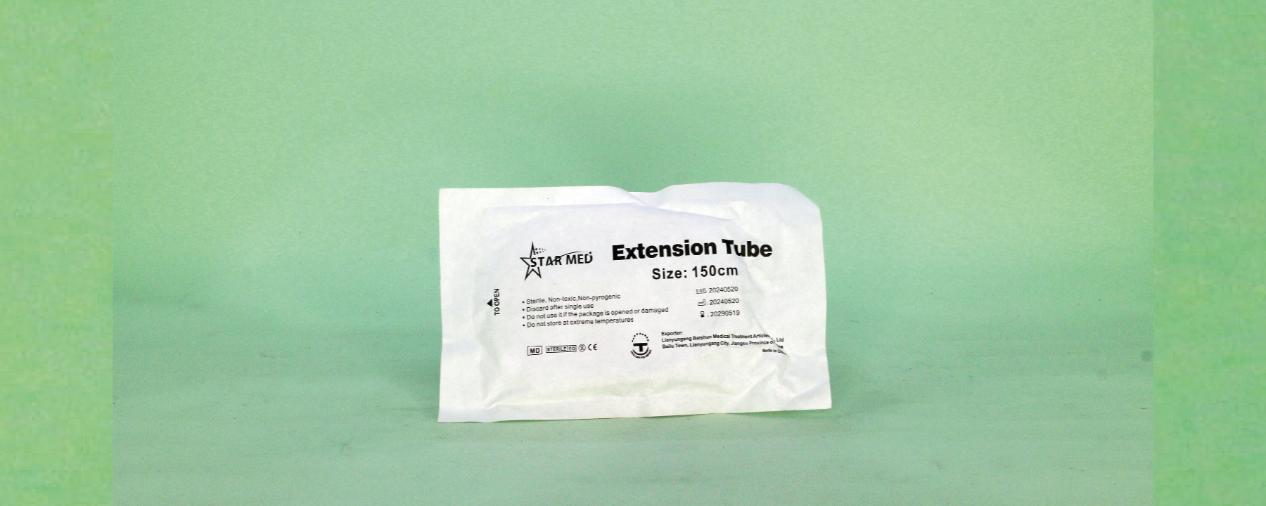 Extension tube designed for use in infusion systems or fluid transfer. Length: 150cm, Inner Diameter: 3mm, Outer Diameter: 4mm. Made of flexible, transparent medical-grade material. Suitable for low-pressure use. Sterile and single-use.